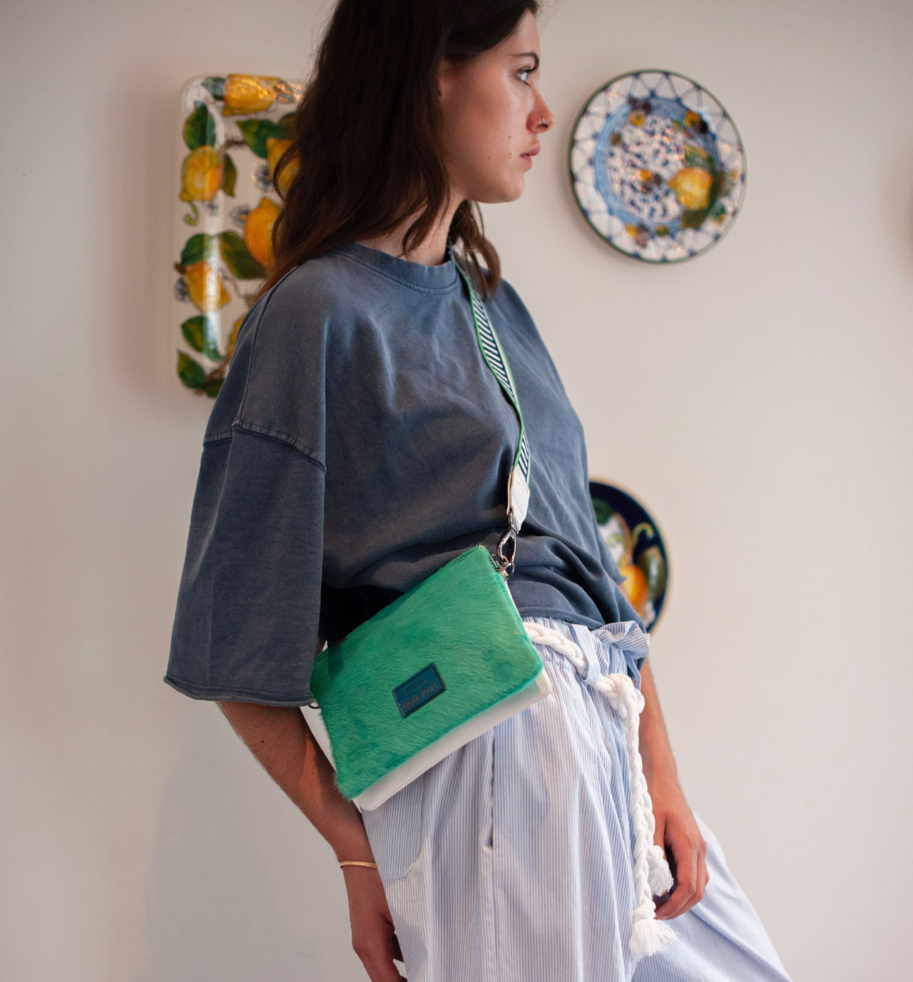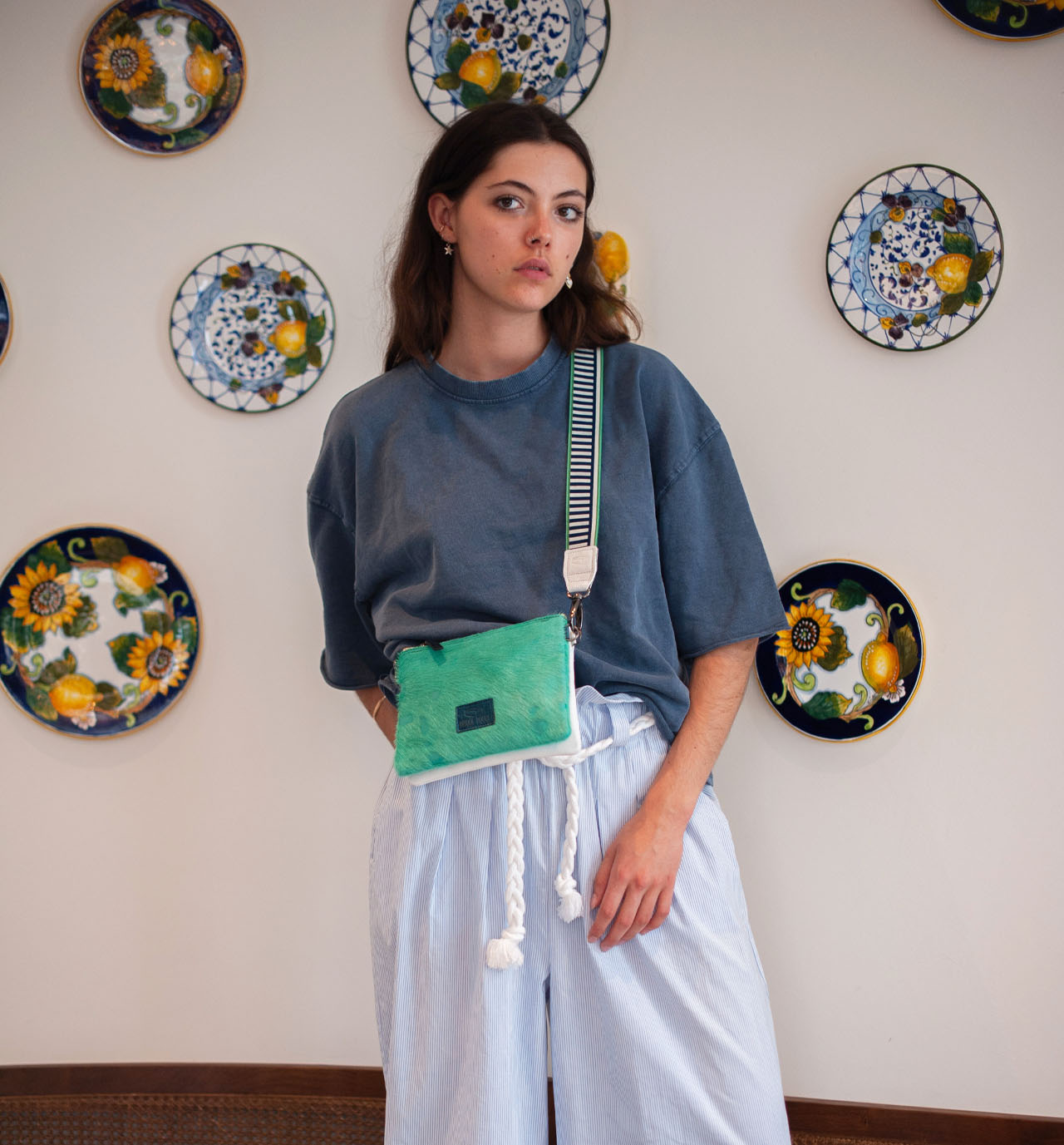 2 pochettes zippées + sangle rayée | Cuirs italien & français | Fabriqué au Portugal